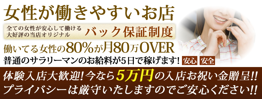 風俗のお仕事に対して不安のある方でも安心して働けるお店作りを目指しております。